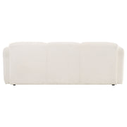 This sculptural sofa blends soft form with enduring comfort for a modern, relaxed atmosphere. Upholstered in a richly textured fabric with a cozy hand, its rounded profile flows seamlessly from the low back to wide, curved track arms. Built with high-quality foam and supportive pocket coil seating, it invites you to sink in and stay awhile. Fully finished and designed for everyday ease, this three-seat sofa anchors the living space with plush, minimalist style. Key Features: • Three-seat sofa with rounded silhouette and low-profile design for sculptural modern style • Upholstered in textured white fabric with a warm, soft hand and dimensional weave • Curved track arms and backrest create a continuous, enveloping frame • High-quality foam padding delivers plush comfort across the entire seat • Pocket coil seating offers long-lasting support and shape retention • Ideal for modern living rooms seeking both softness and subtle sophistication