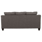 Gracefully blending timeless design and comfort, this sofa anchors any living space with a clean silhouette and flared arms. Plush foam cushions provide supportive comfort, while tailored upholstery adds a refined touch. Its inviting form and accent pillows create an effortlessly balanced look suited for casual and modern interiors alike. A perfect centerpiece for conversation or relaxation, this sofa elevates comfort with enduring style._x005F_x000D_ Key Features: • Flared-arm sofa wrapped in smooth sand-tone upholstery for a soft look • Polyester fabric and plush foam cushions ensure enduring comfort • Rounded armrests enhance both style and relaxation appeal • Accent pillows deliver pattern contrast for a balanced composition • Tapered espresso legs ground the design with visual definition • Durable tailoring keeps the sofa refined and contemporary