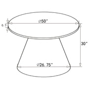 Freshen up your elegant dining room with the luxurious look and feel of genuine marble. This modern dining table pairs a round silhouette with beautiful white marble complete with light grey veining that offers organic elegance and dimensionality. This striking table stands on a conical pedestal base that receives a gleaming gold finish that radiates warmth and sophistication. This table is a stunning addition in a formal dining space, offering refined character to family and friends. The pairing of cool marble and warm brushed gold strikes a perfect balance. Key Features: • Sculptural silhouette perfectly enhances a round marble dining table with modern glam allure • Round table top crafted from luxurious white marble that brings subtle texture and dimension • Conical base adds impactful, sculpted flair, perfect for formal spaces with inviting ambiance • Pedestal features a gleaming metallic brushed gold finish that's rich and warm • Perfect for daily or occasional use in a sophisticated dining room or elegant eat-in kitchen