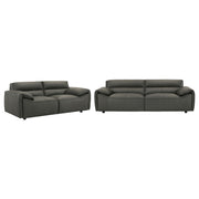 Refined and sculptural, this leather sofa set blends modern minimalism with deep, enveloping comfort. Upholstered in 100% genuine top grain leather, each piece features wide, gently sloped arms and a low-profile frame that grounds the room with effortless presence. Deep seat cushions are filled with high-density full foam and supported by sinuous springs, creating a balanced feel that’s both structured and soft. Tailored yet inviting, this two-piece set is crafted to elevate comfort with enduring sophistication. Key Features: • Two-piece sofa set includes a full-size sofa and loveseat with sculpted low-profile silhouettes • Upholstered in 100% top grain leather for breathable softness and lasting luxury • Wide, gently sloped arms offer relaxed comfort with a modern architectural edge • High-density full foam cushions provide deep, plush seating with durable structure • Sinuous spring seat foundation ensures consistent support and responsive comfort • Orange leather finish adds bold contrast and timeless character to any space
