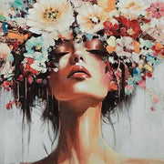 You can never go wrong with florals. This enchanting wall art captures nature's abundant beauty, featuring a woman's headdress overflowing with a stunning variety of flowers. It's sure to brighten your mood each time you see it.