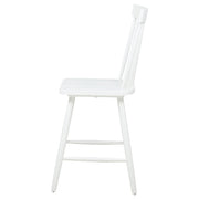 Classic and casual with a fresh farmhouse flair, this Windsor-style counter height chair features a high spindle back and gently contoured seat for timeless comfort. The clean silhouette is crafted from solid rubberwood with a rich wood veneer that enhances its natural grain. Angled legs with double stretchers offer reliable support and charm. Ideal for kitchen islands, pub tables, or counter-height dining spaces. Key Features: • Windsor-style counter height chair in light ash finish brings casual elegance to kitchen counters • High spindle back and curved seat on this counter chair support relaxed, upright dining comfort • Angled leg design adds stability while enhancing its signature farmhouse-style silhouette • Footrest stretchers provide extra comfort and structural integrity for daily use • Crafted from solid rubberwood and topped with a warm-toned wood veneer for natural appeal • Clean, timeless lines and elevated height work perfectly with counter-height tables or bars