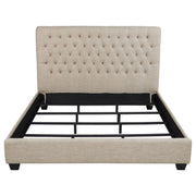 Elevate your bedroom with this upholstered panel bed, crafted with refined details for timeless charm. A tall, button-tufted headboard creates an elegant focal point, while the absence of a footboard lends an airy, open feel. Upholstered in soft fabric and supported by short espresso birch legs, this bed balances style with durability. Built with a sturdy pine and plywood frame, it requires a foundation to provide lasting support and comfort in your sleeping space._x005F_x000D_ Key Features: • Queen upholstered bed with tall button-tufted headboard design • Soft oatmeal fabric upholstery offers classic and timeless style • No footboard construction enhances open and spacious bedroom look • Durable pine and plywood frame ensures reliable mattress support • Espresso finished birch legs provide elegant contrast to the fabric • Requires a foundation for proper stability and sleeping comfort
