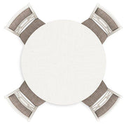 Come together for a delightful dining experience. Chic and relaxed, this counter height dining table and bar stool set effortlessly captivates with its elegant simplicity. The timeless design pairs a crisp white hue with gray textured upholstery. It's a fresh addition everyone will notice.