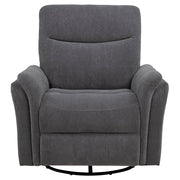 Relaxation meets innovation in this power swivel glider recliner, designed for effortless comfort. A smooth power recline mechanism lets you find your perfect position, while a built-in control panel with USB-A and USB-C charging keeps devices powered within reach. Upholstered in soft fabric over plush foam cushioning, it features gentle gliding and 360-degree swivel motion for versatile lounging. Ideal for modern living rooms, nurseries, or reading corners. Key Features: • Swivel glider recliner features power recline for effortless, adjustable comfort • Upholstered in soft ivory fabric with plush foam cushions for all-day relaxation • Smooth glider base combines with 360-degree swivel for full-range motion • Control panel includes dual USB ports (USB-A and USB-C) for device charging • Durable frame crafted from plywood for lightweight strength and support • Perfect for living rooms, nurseries, or compact lounge spaces with modern needs