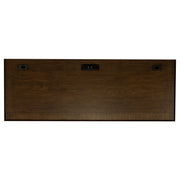 Get creative in how you use and style this attractive Credenza. Its warm burnished oak finish enhances its frame while supported on bracket style legs. Plenty of storage is found within its felt-lined top drawers. Removable dividers allow for extra organization with this piece. Keep your valuables safe and sound within the two lower cabinets that lock with an included key. Key Features: • Credenza with power outlet, USB ports, and locking cabinet • Includes five drawers and two compartments with open shelves • Burnished oak finish paired with antique brass hardware • Felt-lined drawers and removable dividers enhance storage use • Adjustable shelf in cabinet offers versatile functionality • Classic bracket feet and framed construction provide elegance