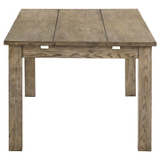 Rooted in timeless tradition, this 87-inch extension dining table is built for gathering and made to grow with life’s unfolding moments. Finished in rich vineyard oak, its broad plank top rests on sturdy legs that speak of quiet strength and lasting presence. Two 12-inch draw leaf extensions glide gracefully from each end, revealing space for more stories, more laughter, and more connection. Crafted from solid rubberwood, it’s a table meant to be lived around. Key Features: • Extension dining table with plank-style top and bold square legs • Vineyard oak finish highlights the rich grain and natural tone variation • Two 12-inch draw leaf extensions glide out from each end of the table • Expands from 62.75 to 86.5 inches without separating the table center • Crafted from solid rubberwood for enduring strength and warmth • Ideal for everyday meals, holiday feasts, and everything in between