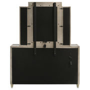 This dresser and mirror set blends soft velvet textures with luminous design for a refined bedroom statement. Fully wrapped in ivory and camel velvet, the eight-drawer dresser features a clear tempered glass top, LED trim, crystal knobs, and reflective acrylic touches. Above, the tri-panel mirror offers LED lighting and velvet framing. With felt-lined drawers, dovetail joints, and solid rubberwood legs, this set balances elegance with enduring practicality. Key Features: • Dresser and mirror set with LED-lit case frame and velvet wrap in ivory and camel • Eight drawers with quilted fronts, crystal knobs, and reflective acrylic detail • Tri-panel mirror with built-in LED lighting and soft-angled visibility • Tempered glass tops the dresser for added shine and durable surface protection • Felt-lined top drawers with English dovetail joints and heavy-duty glides • Crafted from solid and engineered wood and supported by solid rubberwood legs