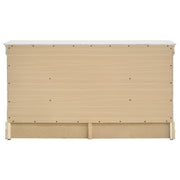 Polish up a traditional decor scheme with this six-drawer dresser, featuring simple and elongated details. Add extra dimension with an exposed wood grain in a warm cappuccino finish. Sleek and simple, radiate classic style and sophistication with the contrast between the deep hue of the wood and nickel bail drawer handles. Crafted from wood veneer and select hardwoods, the silhouette highlights a slightly exposed wood grain. Store clothes in style with the dovetail drawer construction. Key Features: • Six-drawer dresser perfect for adding traditional elegance to your decor • Features an exposed wood grain in a warm cappuccino finish for added dimension • Radiates classic style and sophistication with the contrast of deep wood hue and nickel bail drawer handles • Crafted from wood veneer and select hardwoods, highlighting a slightly exposed wood grain • Offers stylish storage solution with its dovetail drawer construction