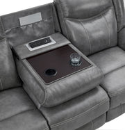 Bring luxury and convenience to your living room with this reclining sofa upholstered in smooth grey faux leather. Designed with plush padded seating, headrests, and armrests, it ensures exceptional comfort. The drop-down centre table reveals dual cup holders, a pop-up power outlet with two AC and two USB ports, and a hidden storage drawer for added practicality. A wall-hugger mechanism saves space, while a one-inch cool gel memory foam topper enhances softness for an upgraded lounging experience. Key Features: • Manual reclining sofa with smooth wall-hugger space-saving design • Grey faux leather upholstery adds sleek, modern visual appeal • Drop-down centre table includes two cup holders for convenience • Pop-up power outlet with dual AC and USB ports enhances utility • Hidden storage drawer keeps remotes and accessories organised • Cool gel memory foam topper delivers long-lasting comfort