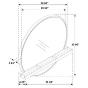 This wall-mounted vanity mirror blends modern sophistication with natural coastal warmth. A round wood frame in a soft sand wash finish highlights subtle wood grain texture, while a built-in shelf with a raised-edge jewelry tray offers space for perfumes, cosmetics, or accessories. Designed for both beauty and function, it keeps essentials within reach while maintaining a clutter-free appearance. Ideal for bedrooms, dressing areas, or entryways, this mirror adds depth and serene style to any space._x005F_x000D_ Key Features: • Round wall-mounted mirror crafted in a soft sand wash wood finish for natural warmth • Integrated shelf includes a raised-edge jewelry tray for safe storage of small essentials • Ideal surface for displaying perfumes, cosmetics, or decorative accessories with ease • Wire-brushed wood texture enhances visual depth and organic coastal sophistication • Constructed from durable rubberwood, engineered wood, and supportive plywood framing • Adds functional elegance and airy modern charm to bedrooms or dressing spaces