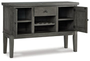 Cool and on-trend. This dining package sports an antiqued gray finish for a contemporary-yet-casual feel. With this set, dining with friends and family has never been so stylish.